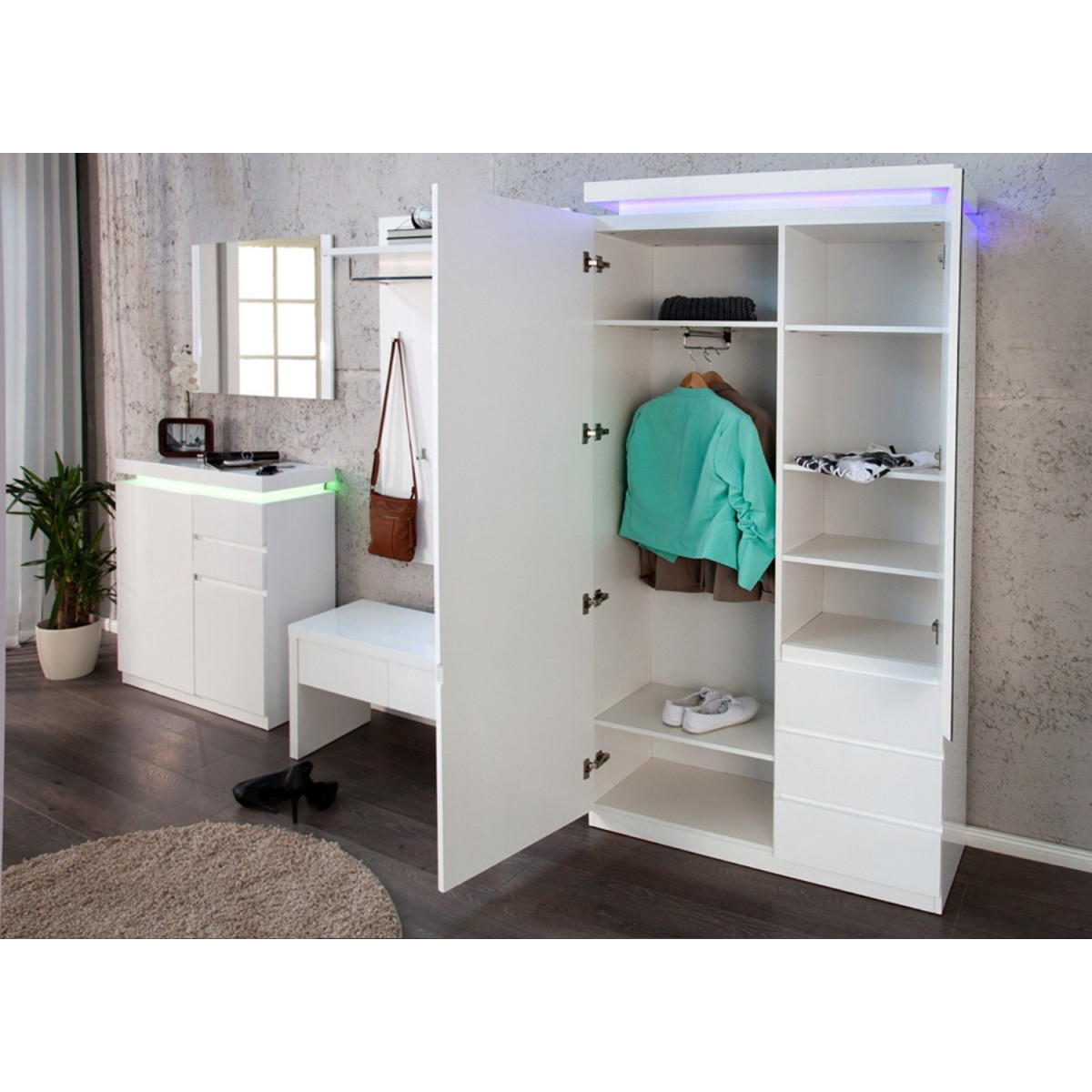 La décoration de votre intérieur commence par votre entrée. Le hall d’entrée est la première pièce par laquelle nous entrons. Parmi notre collection de meubles d’entrée, vous trouverez des meubles à chaussures tous styles avec portes abattantes et tiroirs et dans de nombreuses couleurs : blanc, noir, anthracite, gris ou en bois clair. Les vestes pourront être accrochées sur des porte-manteaux muraux pour un gain de place assuré. Les grands couloirs pourront aussi accueillir des armoires d’entrée avec miroir et tringle extensible. Nos meubles de rangement pour entrée s’intégreront parfaitement à toute ambiance d’intérieur.